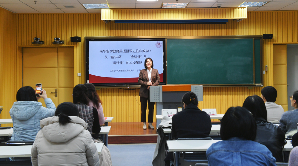 为加强来华留学教育师资队伍建设,提高教师授课水平,近日,国际教育学院在临床技能培训中心举办来华留学生教育英语授课技能提升培训班。山东大学二级教授、中国教育国际交流协会国际医学教育分会原理事长张岫美,山东大学齐鲁医院消化科副主任、泰山学者青年专家李真,山东大学病原生物学系教授杨青应邀来作专题讲座和讲授示范课。培训班由国际教育学院院长李向云主持。